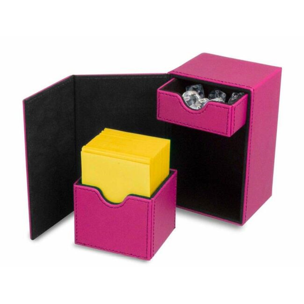 The BCW Deck Vault is built to last and will not let you down. It features a padded faux leather outer shell with a microfiber faux-suede interior. The contrasting stitching compliments its deep colour. The durable construction will keep your cards safe from damage and make sure your deck is ready for the next round. Any card game works great in the BCW Deck Vault including Magic: The Gathering, Pokemon, YuGiOh, Star Wars, Final Fantasy, and Force of Will just to name a few. The BCW Deck Vault is a hearty option for storing and transporting your collectible gaming cards with dice and tokens. It is sure to impress and intimidate your weaker opponents. Holds over 80 sleeved standard gaming cards. Blue leatherette outer shell with light blue stitching. Flip-open panel with strong magnetic closure. Removable inner deck and dice trays