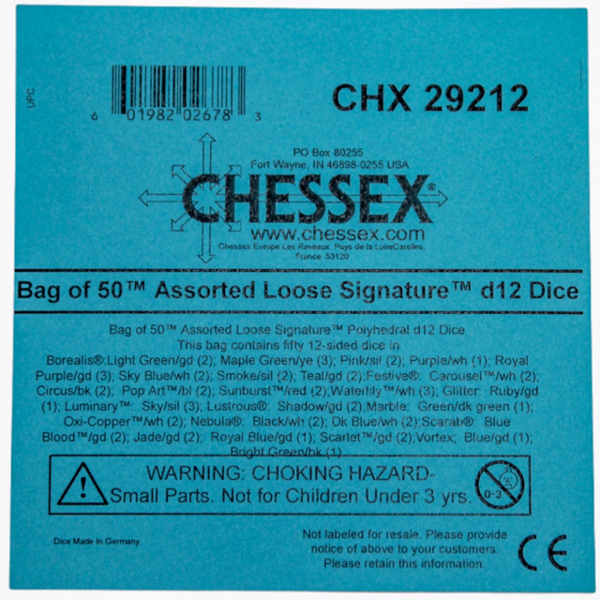 Bags of fifty 16mm polyhedral, 12-sided dice will contain a variety of individual D12s from the signature range.