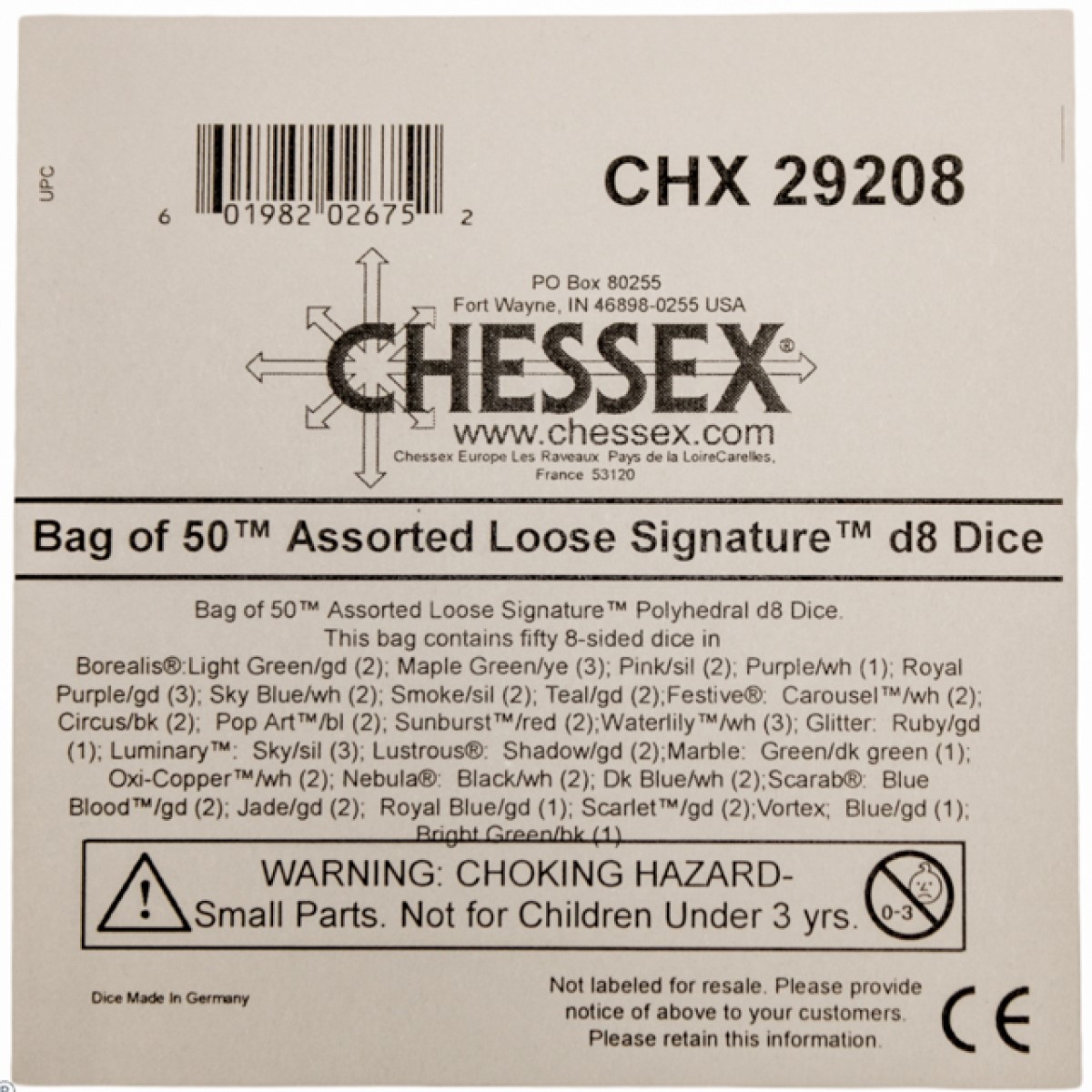| Manufacturer | Chessex |