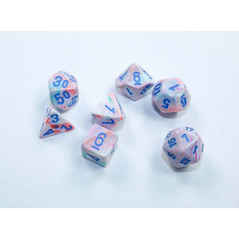 08CHX20544 Chessex – Festive® Mini-hedral™ Pop Art™/blue 7-Die set