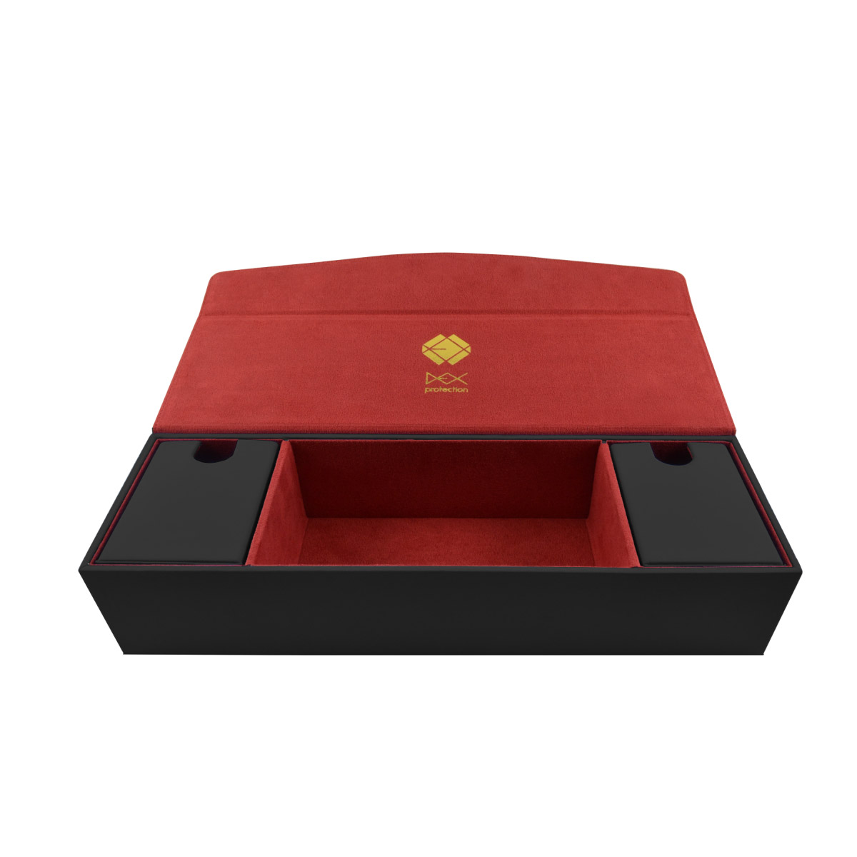 7 extra strength magnets. Real suede interior. Wood constructed. Dual removable compartments. Saffiano exterior.