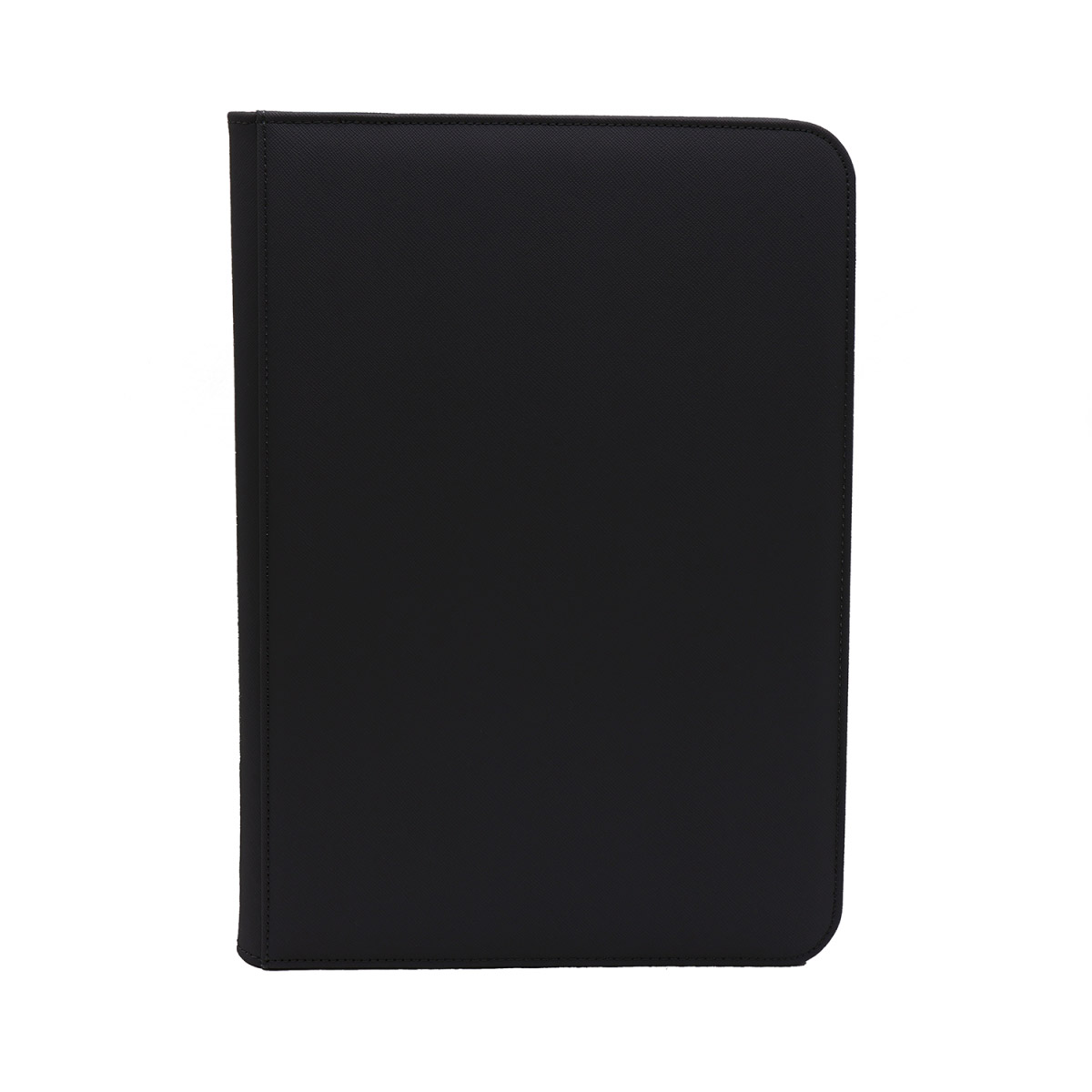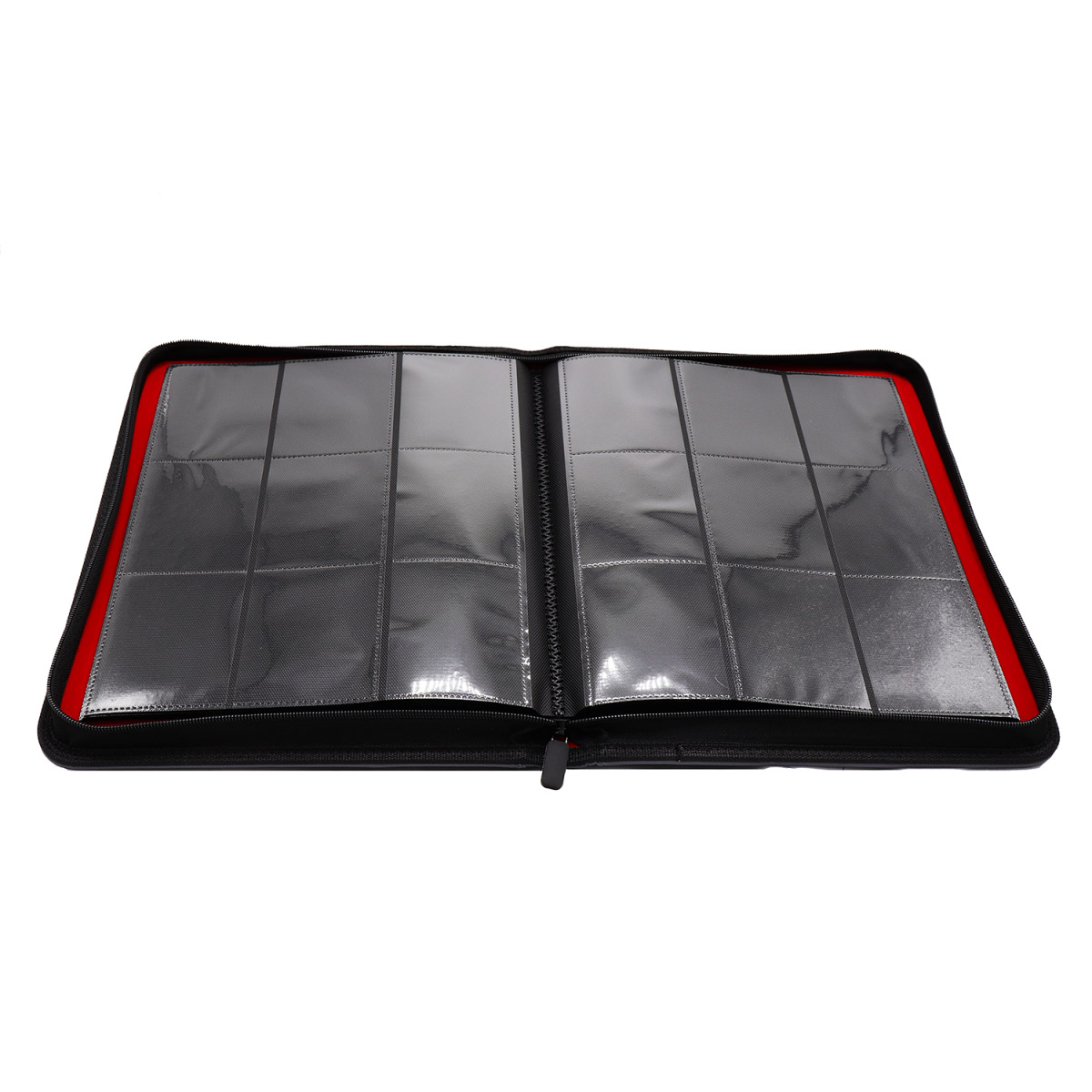 Holds 360 double or single sleeved, standard sized cards. 20 side loading acid and PVC free pages. Additional fly leaf before the first and last pages for added protection. Real velvet interior. Heavy gauge tough zipper. Padded Saffiano exterior.