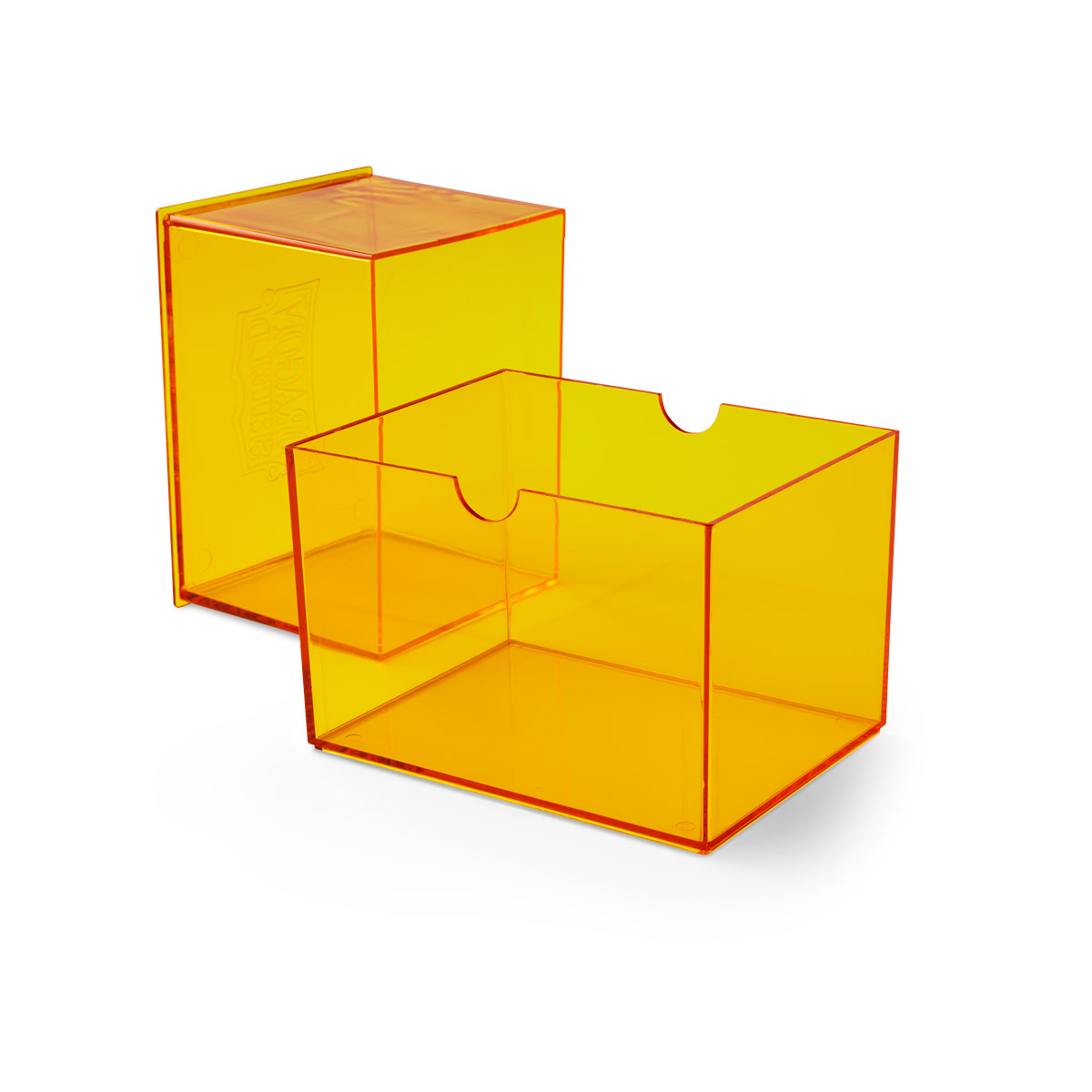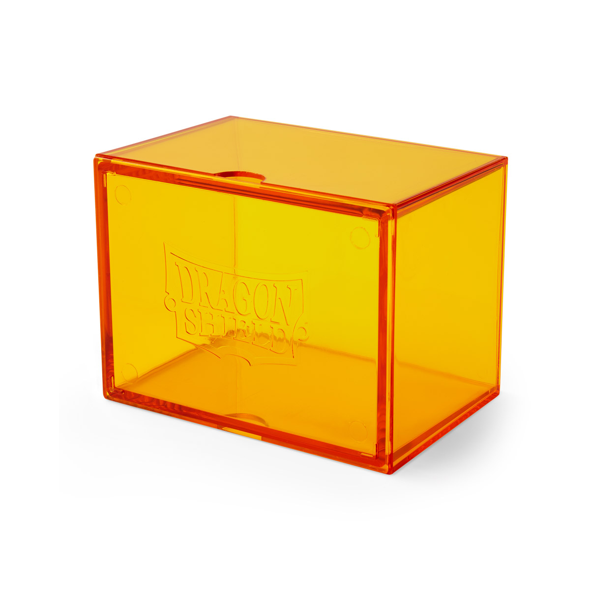 The Dragon Shield Gaming Box keeps your cards safe between games. Each Gaming Box is like a treasure chest protected by the epic power of a dragon, with your most precious cards tucked inside. Fits 100+ sleeved cards per box. Works with standard Size (63?88 mm) or Japanese Size cards (59?86 mm). Locks with a tight-fit plastic overlay. Hard as dragon scale. Comes in 17 colours: Clear, Black, Blue, Green, White, Gold, Red, Silver, Purple, Brown, Pink, Orange, Copper, Night Blue, Ruby, Emerald and Yellow.