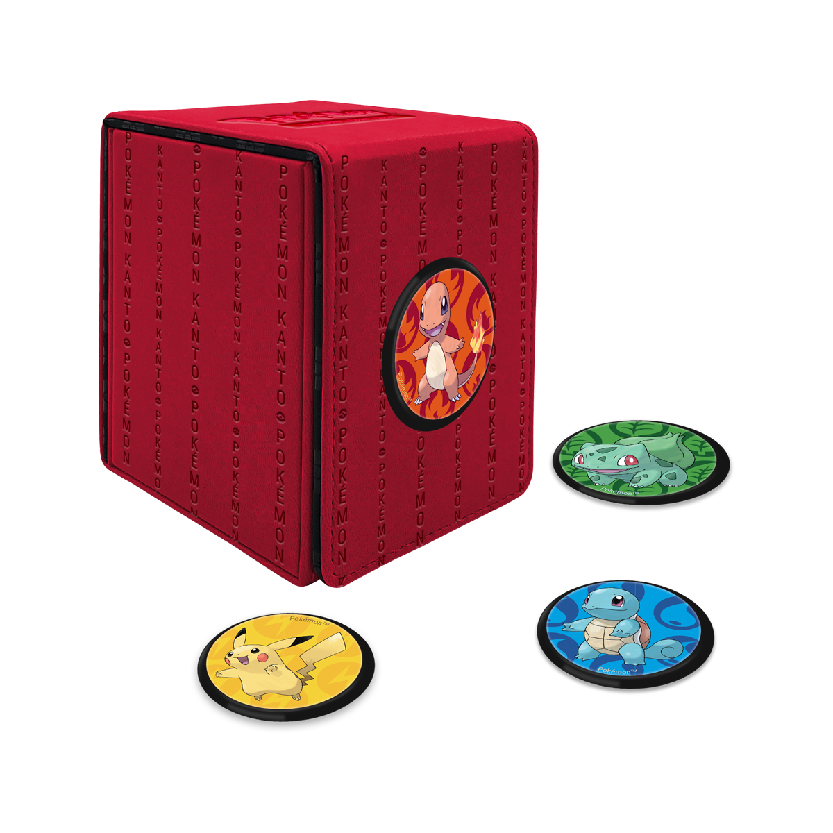 Collect, store, and personalize with the Alcove Click for Pokémon! The Alcove Click comes with four themed badges featuring Charmander, Bulbasaur, Squirtle, and Pikachu. This Deck Box holds up to 100 standard size trading cards double-sleeved in Ultra PRO Deck Protector® sleeves, features a strong magnetic closure, and has dual thumb notches for easy access to your deck. Personalize your Alcove Click by popping on your favorite magnetic badges and replacing them with other badges. badges have a 1.5 in. diameter. This is the perfect accessory for any Pokémon TCG player or collector.