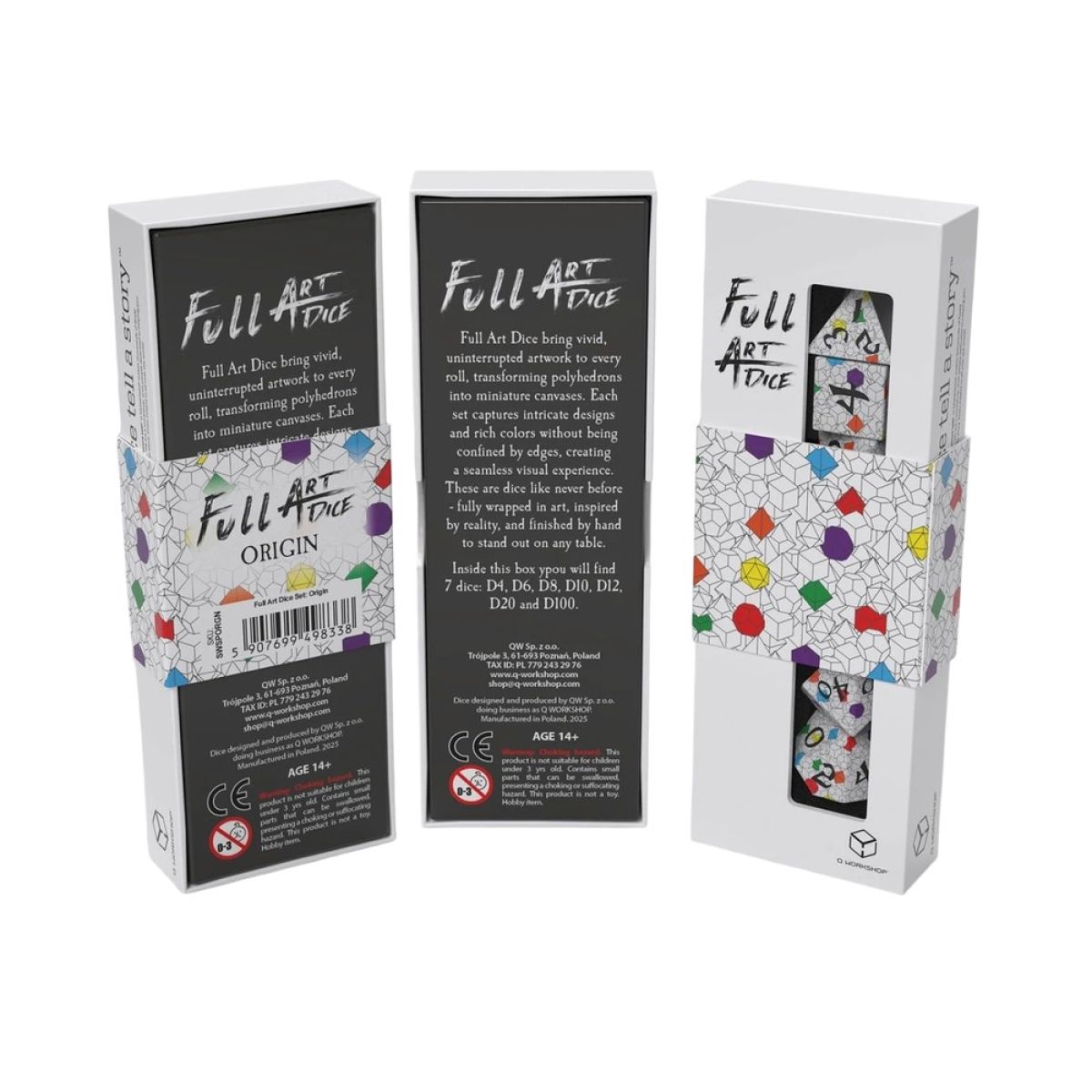 Q Workshop – Full Art Dice range brings vivid, uninterrupted artwork to every roll, turning polyhedrons into miniature canvases. Each set showcases intricate designs and rich colors without being confined by edges—creating a seamless visual experience.