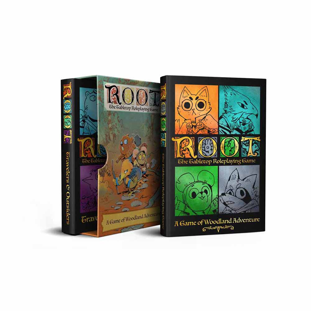 The Deluxe Edition of Root: The RPG contains both the Root RPG Core Book and the first supplement, Travelers and Outsiders, wrapped in a hard slipcase that features the amazing art of original Root artist, Kyle Ferrin. Complete with foil-stamped covers and silk bookmarks, these deluxe versions of both Root: The RPG books contain everything you need to bring tales of the Woodland to your table! your vagabond adventures across the Woodland, you will encounter villains, leaders, innocents, and everything in between with this fully-illustrated, 55-card deck of Woodland denizens, complete with stats, personality traits, game-ready requests for the vagabonds, and new art by Kyle Ferrin!