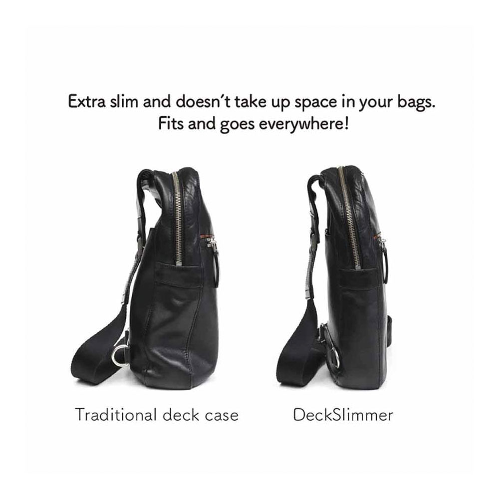 The DeckSlimmer can hold 140 single-sleeved cards, 120 double-sleeved cards, 100 triple-sleeved cards, or 270 cards without sleeves all while maintaining the core functionality of transforming into its extra slim form. The lid features magnet strips to ensure cards remain safe inside the deckbox when closed.