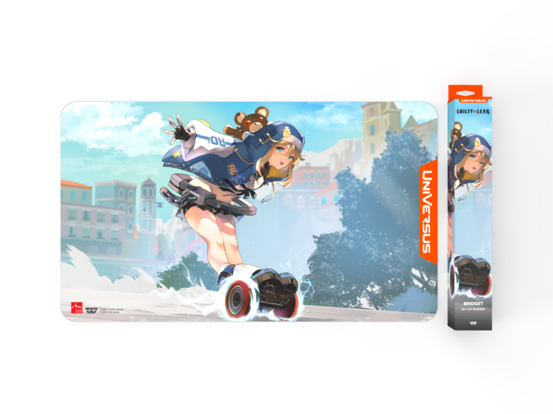 This release is all about style, power, and intensity, featuring characters from Guilty Gear -Strive-. Show off your cards in style with this stitched trim playmat in a retail ready box featuring Bridget!