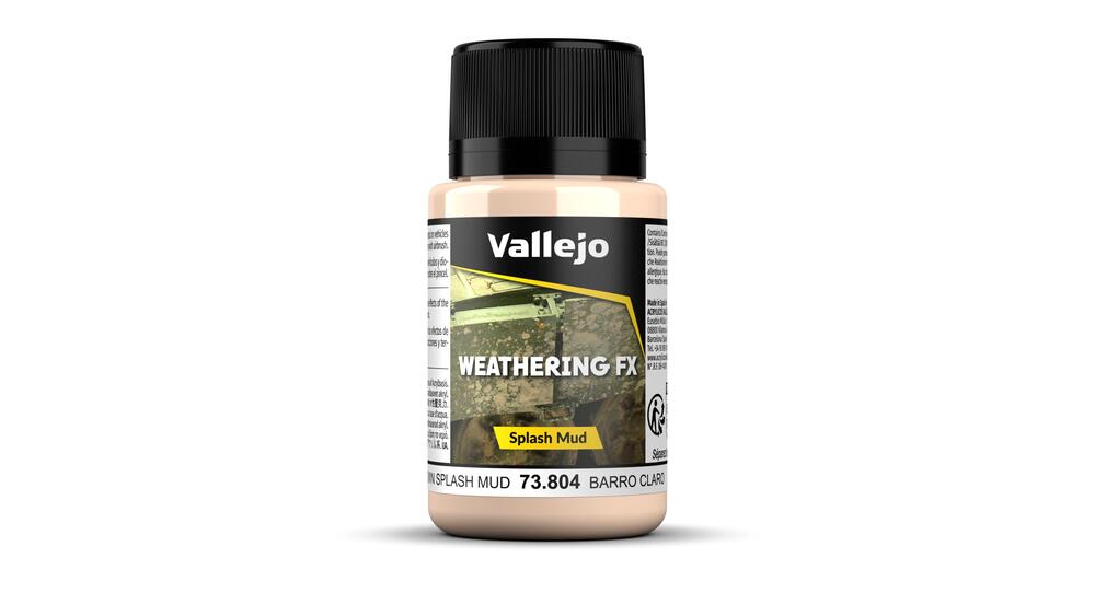 When a vehicle drives through muddy terrain, mud splashes are inevitable. The range of Splash Mud has been formulated so that by simply blowing air through the airbrush over a brush loaded with mud, from a short distance from the model and on the specific area, realistic splash effects will be spattered all over the model. Splash Mud can also be applied using a stiff brush or stick. The range includes six different kinds of mud, manufactured with natural pigments and water-based acrylic resins, which drie to a slightly glossy finish which suggest the humid nature of the products. The product can also be splashed on the model with an airbrush by loading a regular brush with Splash Mud and projecting air against the brush towards the model.