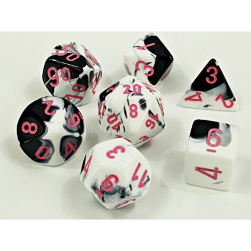 Chessex – Gemini Polyhedral Black-White/pink 7-Die Set
